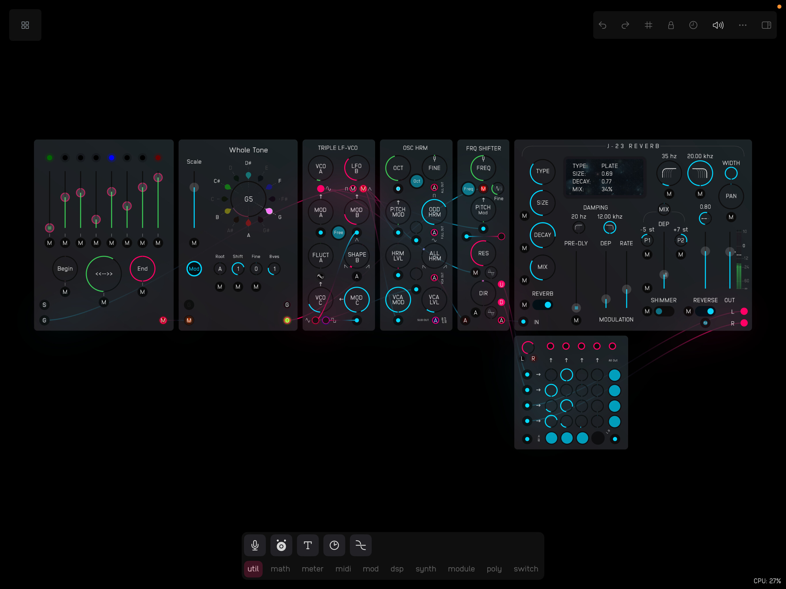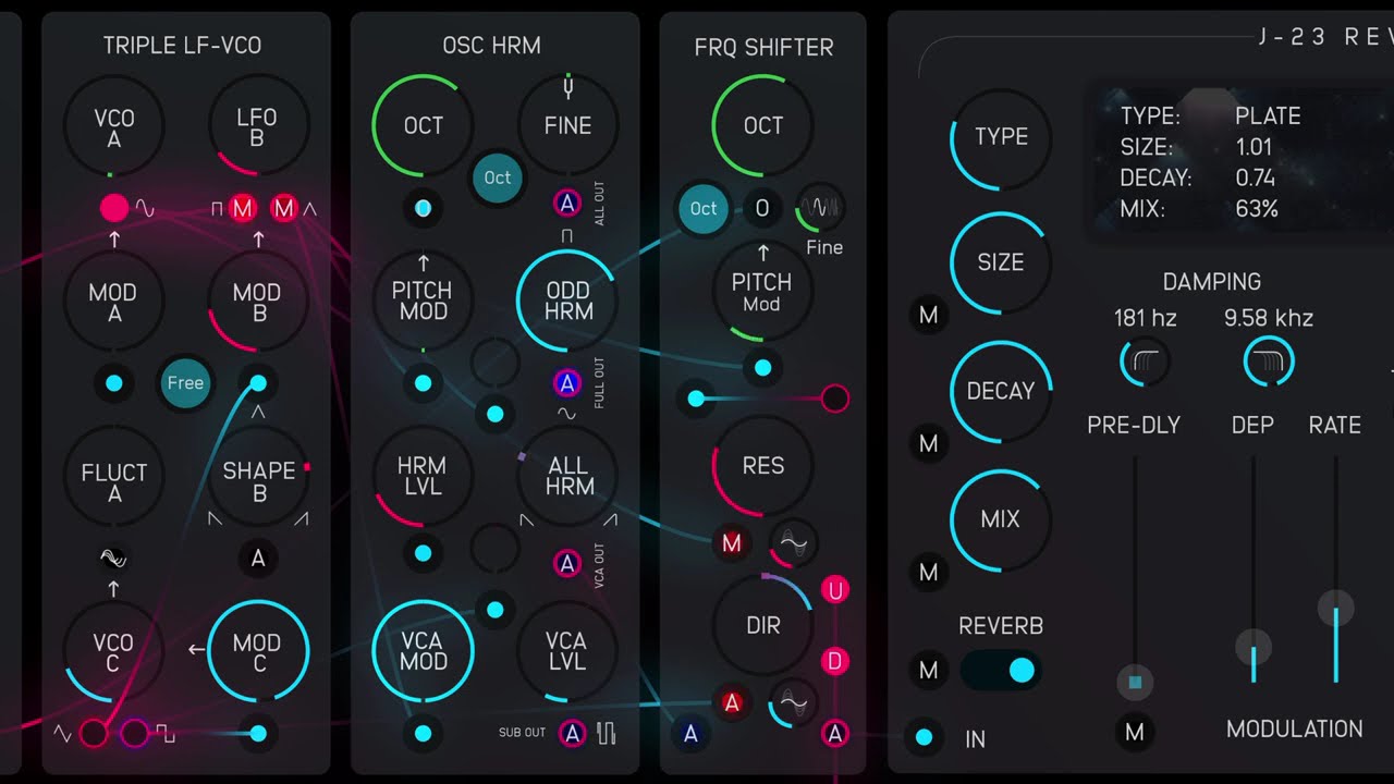And as with the Phaser the presence of all those Z-1 filters makes possible some nice percussive effects when pinging the shifter with low pulses. (N.B. The modulation inputs are bipolar.)