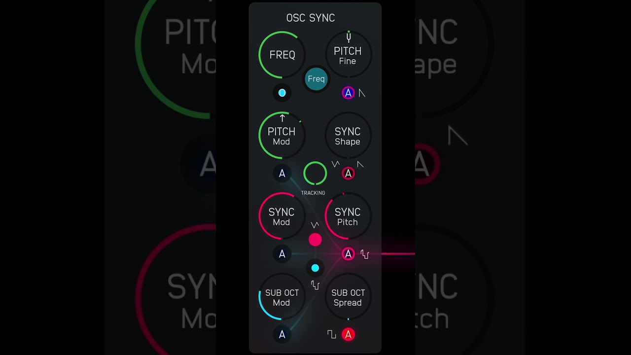 For those new to this module, Hordijk’s Sync Oscillator introduces two innovative features to the classic sync-oscillator setup in which one oscillator resets the starting point of another, in this case a sawtooth oscillator (with downward slope) resetting a triangle wave oscillator (that can be morphed into a sawtooth).