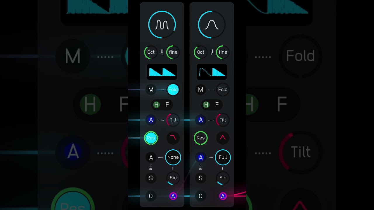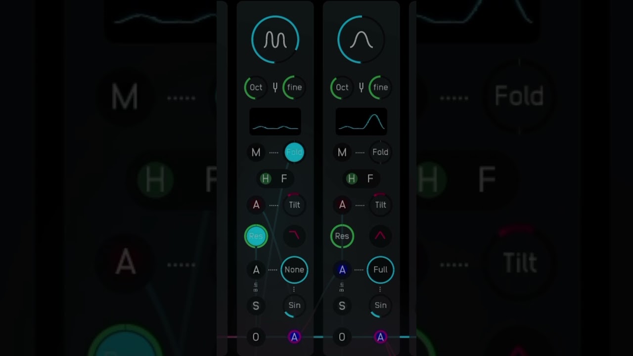 In this implementation a phasor ramp is ‘bent’ in order to read through the different stages of sine or cosine functions at different speeds and in that way generate a wealth of waveforms. The cosine, for example, turns into a sawtooth with the ‘bend’ set to half, or a pulse wave with the bend set to full. (See Phase Distortion Workshop patch on Discord.)