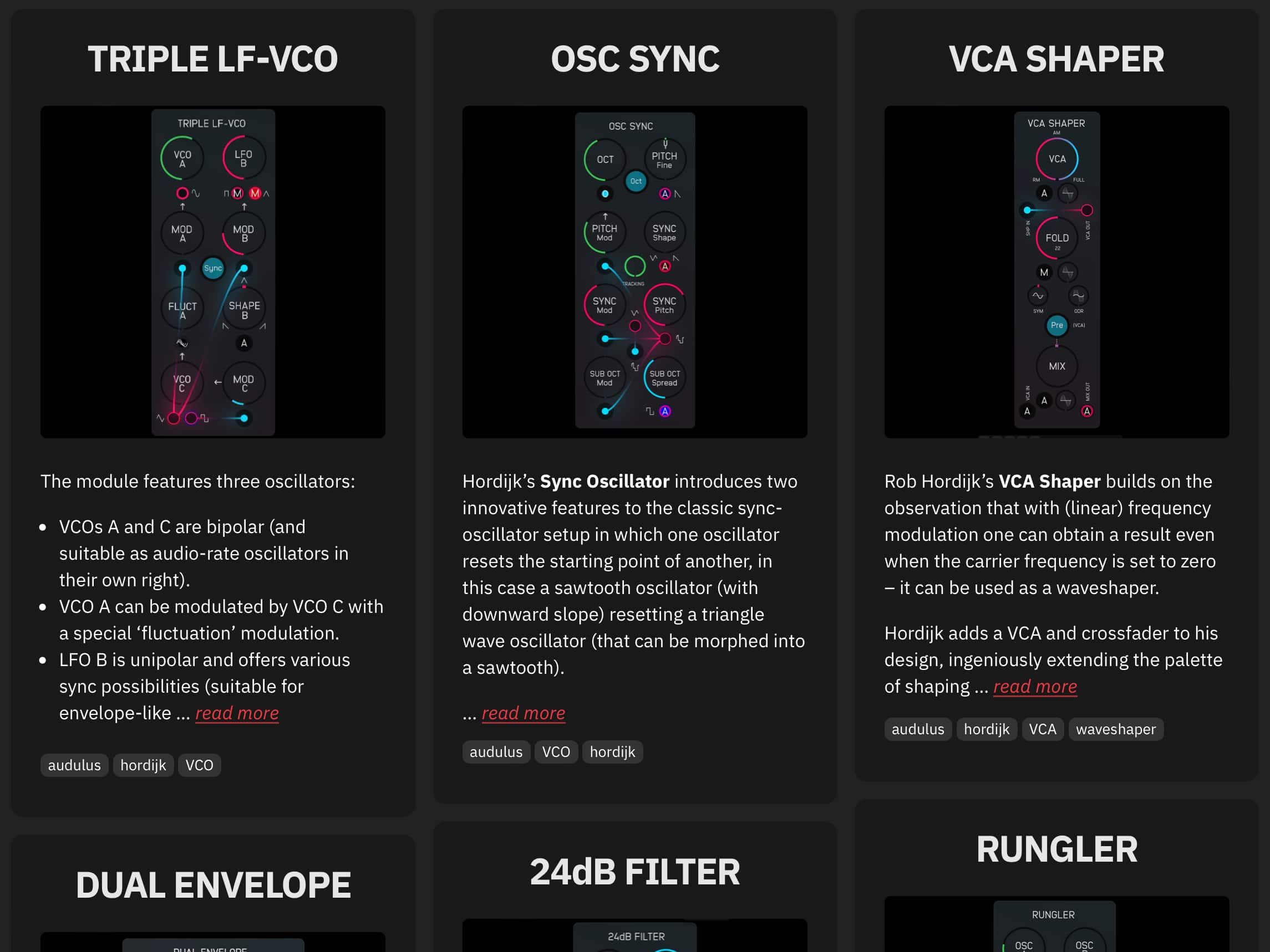 I recently had the impulse to present a collection of my Audulus modules on my own website. While not wishing to create an extra place to visit, I thought it would be nice to have some kind of overview – something that’s not possible on the Discord or Forum. In the process I’ve done some internal and external cleaning up of the modules and their documentation, and in some cases, created new versions. I’m only around halfway through the modules, but thought I’d share what I’ve reached thus far, for what it’s worth. (The updated versions have been uploaded here to the forum.)